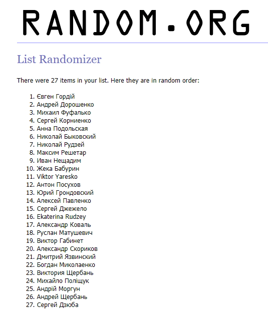 Итак, вот скриншот результатов с сервиса random.org: